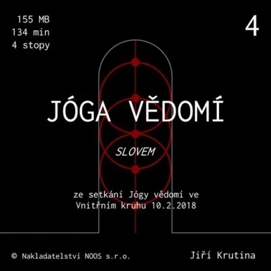 Jóga vědomí slovem 4 - audiokniha obsahuje nahrávky ze setkání jógy vědomí ve Vnitřním kruhu z 10. 2. 2018. Obsah: 1. Princip vědomí – kultivace vědomí celo-tělesného prožívání, 2. Kultivace prostorové subjektivity těla (jóga-um prostoru), 3. Kultivace vědomí dechu (jóga-um dechu), 4. Prostor pro otázky a dialog nad jógou vědomí. Nejedná se o studiovou nahrávku.