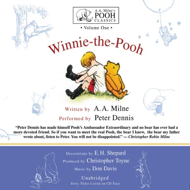 Blackstone Audiobooks presents, from the unabridged collection A. A. Milne's Pooh Classics, the ten stories of Winnie-the-Pooh performed by Peter Dennis.Come with us to an enchanted place, a forest where Winnie-the-Pooh lived with Piglet, Rabbit, Owl, Eeyore, Kanga, and Little Roo. The stories are about Christopher Robin and these good companions having wonderful times getting in and out of trouble. It is all very exciting and, really, quite thrilling no matter how young or old you may be.This reading has earned the prestigious Audie Award, Parents' Choice Gold Award, Ohio State Award of Merit, and the Corporation for Public Broadcasting Silver Award.This is the only reading of these immortal stories authorized by A. A. Milne's son, Christopher Robin, who wrote, "Peter Dennis has made himself Pooh's Ambassador Extraordinary and no bear has ever had a more devoted friend. So if you want to meet the real Pooh, the bear I knew, the bear my father wrote about, listen to Peter."