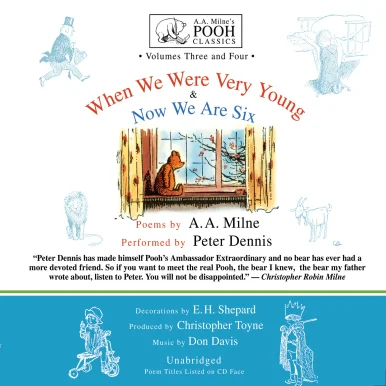 Blackstone Audio presents, from the unabridged collection "A.A. Milne's Pooh Classics," the forty-four poems from When We Were Very Young and the thirty-five poems of Now We Are Six, performed by Peter Dennis. This is the only reading of these delightful verses authorized by A.A. Milne's son, Christopher Robin.The first of A.A. Milne's four world-famous books for children, When We Were Very Young introduced Christopher Robin to innumerable friends and has probably been read more widely than any other book of verse for children published in our time. Now We Are Six followed, becoming a modern classic in its own right.For sheer delightfulness, the children's rhymes of A.A. Milne are in a class by themselves with their charm, humor, understanding, and irresistible rhythms.