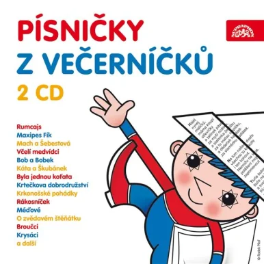 Písničky z Večerníčků Napsali či zpívají Zdeněk Svěrák, Marek Eben, Jiřina Bohdalová, Libuše Šafránková, Petr Skoumal, Boleslav Polívka, Petr Nárožný, Ondřej Suchý, Josef Dvořák, Pavel Zedníček… Znělky a písničky ze 40 Večerníčků Rumcajs, O Křemílkovi a Vochomůrkovi, O makové panence a motýlu Emanuelovi, O zvířátkách pana Krbce, Maxipes Fík, Mach a Šebestová, Mach a Šebestová na prázdninách, Pohádky o mašinkách, Malá čarodějnice, Žofka, O skřítkovi Racochejlovi, Příběhy včelích medvídků (1-4), Bob a Bobek, Káťa a Škubánek, Broučci (2-3), Byla jednou koťata, Míša Kulička, Krkonošská pohádka, Jak Bzuk a Ťuk putovali za sluníčkem, O Rákosníčkovi, Já Baryk, Krtečkova dobrodružství (1, 3 a 4), Méďové (1-2), Tuláček, Vydrýsek, Pruhovaní kamarádi, Vlčata, Kluci ze zámku, Ježek, Krysáci, Žížaláci, O zvědavém štěňátku (1-2) To, co spojuje lidi po celý život, jsou společné vzpomínky z dětství. Již desítky generací českých dětí dobře znají písničky a hudbu z Večerníčků Macha a Šebestové, Rumcajse, Křemílka a Vochomůrky, Maxipsa Fíka, Makové panenky, Kluků kočičích, Rákosníčka, Včelích medvídků, Žofky, Malé čarodějnice, Boba a Bobka, Broučků, Krkonošských pohádek, Krtečka, vyprávění o zvířátkách Václava Chaloupka, Zvědavého štěňátka a řady dalších. K nim se pak přidávají čerstvě narození znalci písniček z Večerníčků let nedávných - Krysáků a Žížaláků. Dvě CD jsou přehlídkou písničkové a hudební tvorby, která předurčuje vkus malým posluchačům na celý život. V jednom kompletu zde malí i velcí najdou všechno to, co se každému jako první z Večerníčků vybaví: hudba a písničky. To nejlepší z Večerníčků pohromadě na 2CD