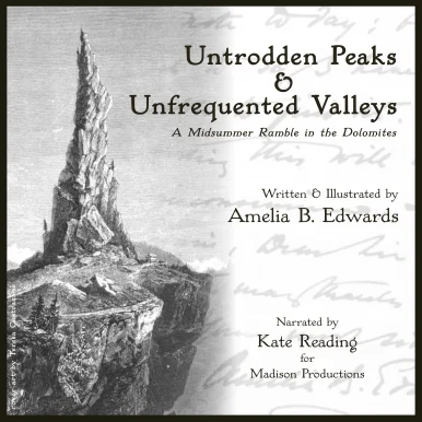 “Probably the most dramatic landscape on earth."Amelia B. Edwards first heard about the Dolomites in 1853, through sketches brought back to England from Italy. On 27 June 1872, she embarked on a trip through the mountains with her friend Lucy Renshaw.At the time of Edwards’s visit, the Dolomites were described as terra incognita and even educated persons had never heard of them. During the expedition, Edwards also sought works of Titian, finding a Madonna and Child in Serravalle (Vittorio Veneto) and two other paintings at a village church in Cadore.They traveled alone, by carriage, by cart, side saddle on mules, and on foot, visiting remote villages where few foreigners had been, and explored the strikingly beautiful limestone mountains with the help of local guides.Edwards chronicled their journey in this best-selling Victorian travelogue, writing detailed descriptions of the geological, cultural, and political history of the region. She also sketched the illustrations that appear in the book.After her descent from the mountains, Edwards described civilized life as a “dead-level World of Commonplace.”