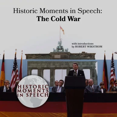 Following World War II, through the 1990s, there existed a sense of mutual distrust between the United States and the Soviet Union. The hostile environment included American fears of a Russian plan to control the world and the USSR’s resentment over US intervention in foreign countries. The Cold War includes such speeches as JFK’s address to the nation on the arms buildup in Cuba and commending West Berliners on their dedication to democracy, Presidents Nixon and Ford on treaty talks in Helsinki, and Ronald Reagan confronting Mikhail Gorbachev at the Berlin Wall. Produced by the Speech Resource Company and fully narrated by Robert Wikstrom.Winston Churchill, “The Iron Curtain,” 3/5/46Harry Truman, “The Truman Doctrine,” 3/12/47George C. Marshall, “The Marshall Plan,” 6/5/47Harry Truman, Korean War, 4/11/51Dwight Eisenhower, “Chance For Peace,” 4/16/53Dwight Eisenhower, “Atoms For Peace,” 12/8/53John Kennedy, Nixon Presidential Debate, 10/7/60John Kennedy, “Bay Of Pigs,” 4/27/61John Kennedy, “Cuban Missile Crisis,” 10/22/62John Kennedy, Nuclear Arms Reduction, 6/10/63John Kennedy, Berlin Wall, 6/26/63Dwight Eisenhower, “World Peace,” 7/13/64Lyndon Baines Johnson, Vietnam, 9/29/67Richard Nixon, Vietnam, 11/3/69Richard Nixon, SALT Treaty Talks, 5/20/71Gerald Ford, Foreign Policy, 4/10/75Gerald Ford, Helsinki Peace Accord, 8/1/75Jimmy Carter, China Relations, 12/15/78Ronald Reagan, “Evil Empire,” 3/8/83Ronald Reagan, Brandenberg Gate, 6/12/87