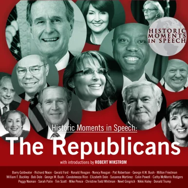 Republican Party spokespeople include presidents, advisors, and candidates. Speeches are given by Barry Goldwater, Richard Nixon, Ronald Reagan, George H. W. Bush, George W. Bush, Donald Trump, and others. Words that support the party line and are meant to win elections. Produced by the Speech Resource Company and fully narrated by Robert Wikstrom.Barry Goldwater, RNC Nomination Acceptance SpeechRichard Nixon, RNC Nomination Acceptance SpeechGerald Ford, Address to Congress, “Whip Inflation Now”Ronald Reagan, Speech to Congress, “Economic Recovery”Nancy Reagan, Address to 1988 Republican National ConventionPat Robertson, 1988 RNC Convention speechGeorge H. W. Bush, 1989 Inauguration SpeechMilton Friedman, “Rise of Socialism”William F. Buckley, “Premise of Liberalism”Bob Dole, “Political Wit”George W. Bush, Address to Congress following 9/11 attacksCondoleezza Rice, “Perspectives on Leadership”Elizabeth Dole, Leadership Award at Trevecca Nazarene UniversitySusanna Martinez, Address at 2012 RNC ConventionColin Powell, Commencement Address at High Point UniversityCathy McMorris Rodgers, 2015 CPAC SpeechPeggy Noonan, Address at Ronald Reagan LibrarySarah Palin, Speech at Western Conservative SummitTim Scott, Address to Congress on “Race Relations”Mike Pence, Indiana Veterans Day CeremonyChristine Todd Whitman, Future of Ocean SymposiumNewt Gingrich, Address to Heritage FoundationNikki Haley, Speech to U.N. on North KoreaDonald Trump, Address to the United Nations on Iran Nuclear Deal