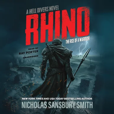 “Conan meets Mad Max for a new generation.”—Jonathan Maberry, New York Times bestselling authorIn the brutal wasteland centuries after the nuclear apocalypse, a warrior baptized in blood will defy the brutal empire that has enslaved his people.Over two centuries have passed since the Third World War reduced civilization to ashes in a global nuclear inferno. Unforgiving geomagnetic storms rage, blocking out the sun and poisoning the radioactive Earth. Humanity clings to survival above the tempestuous skies in giant airships, sustained by Hell Divers—brave souls who risk their lives plunging to the surface for essential parts and supplies.But this is not the story of the Hell Divers. This is the saga of the survivors on the ground, centered on Nick Baker, a frail orphan born in the perpetual darkness of an ITC bunker. He spent his early years toiling in a machine shop dreaming of what might be beyond the dark skies and poisoned wastes. That dream became a nightmare when Cazador raiders descended, massacring and enslaving his people.From the savage cradle of life underground to the campaign of war across the brutalized surface, witness Nick’s rise from boy slave to a towering, fearsome warrior hell-bent on freeing his people from bondage to the great Cazador empire.Embark on this riveting postapocalyptic adventure and discover the legend of a man his enemies will come to fear as Rhino …