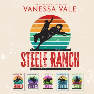 The ultimate cowboy ménage experience! The steamy contemporary series that has it all, including two (or three!) cowboys in every book! Spurred: Welcome to Steele Ranch, where the men see what they want. And claim it. For Cord and Riley, that’s sexy and sinfully sweet Kady Parks. The Philadelphia school teacher discovers she’s the heir—along with half-sisters she didn’t know existed—to the Steele fortune, including a real-life cattle ranch. The West is as wild as she imagined when two hot cowboys take her for one wild ride.Wrangled: Penny believes fate has stepped in when she becomes an heiress to Steele Ranch. She takes her chance to break free from the family she never truly felt a part of and heads to far-off Montana. Cowboys Jamison and Boone set their sights on the smart, beautiful blonde and have no intention of letting her go, especially since she’s wrangled their hearts. Tangled: Cricket is used to relying on no one but herself. When three hot cowboys give her a night to remember, she believes it’s just that. One night. For Sutton, Archer, and Lee, Cricket’s the one who got away. Hell, she’s The One. Period. Once she’s back in their arms, they’ll do anything to keep her. Hitched: One unexpected encounter brings Sarah face to face with the two men she’s crushed on for years. Yes, two. Wilder and King have been the basis for every one of her fantasies for as long as she can remember. Now, the three of them get to make things right. To finally be together. But nothing’s ever simple, and the secrets she’s held could tear them apart. Lassoed: Sam and Ashe didn’t believe in love at first sight. Until now. One look at Natalie and they’re ruined for all other women. But a final twist puts all five of the Steele sisters in danger. With the help of their men, can Natalie, Kady, Penny, Cricket, and Sarah finally find peace and bring the one thing back to the ranch that’s always been missing? Family.