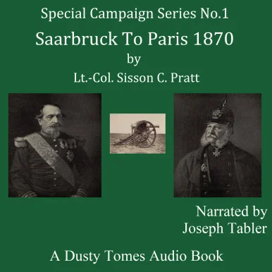 A Dusty Tomes Audio BookIn Cooperation with Spoken RealmsSaarbrück to Paris, 1870: A Strategical Sketch by Lieut.-Colonel Sisson C. PrattNarrated by Joseph TablerSpecial Campaign Series No. 1 published by Swan Sonnenschein 1904. (Franco-Prussian War 1870–1871)Publisher’s Preface to the Series: The “Special Campaign” Series deals with the history of the war in its technical aspect, and the text of each volume is interspersed with strategical and tactical comments. A description of the Russo-Turkish war of 1877 is in the course of preparation, and subsequent volumes will deal with those campaigns of the nineteenth century that present features of exceptional military interest. It is hoped that this series will not only be useful for examination purposes but may form the nucleus of an interesting library for the military student.From the Author’s Preface: Strategy is a term of wide significance. It is applied to the plans, combinations, and movements in war whereby the probability of success is increased, the effect of victory enhanced and the results of defeat minimized. It embraces the art of the general in conducting operations in the theatre of war and the methods by which he seeks to bring the enemy to battle. In warfare between the armed nations of Europe but the little scope is afforded for the brilliant combinations that marked the era of Napoleon. The existence of telegraphic communication eliminates to a great extent the chance of surprise, while the movements of great bodies of troops are restricted by their dependence on railway systems…In addition to its strategic lessons, the campaign of 1870 marks a distinct era in tactical progress: and the experiences of the war founded the theory of modern combat.Publisher’s PrefaceAuthor’s PrefaceI. The War of 1870II. WeissenburgIII. WoerthIV. SpicherenV. Borny - ColombeyVI. Vionville - Mars-La-TourVII. Gravelotte - St. PrivatVIII. Chalons and RheimsIX. BeaumontX. SedanXI MetzXII. ParisDusty Tomes Audio Books are public domain books retrieved from the ravages of time. Available for the first time in this format for your pleasure and consideration.