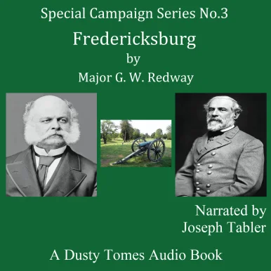 A Dusty Tomes Audio BookIn Cooperation with Spoken RealmsPublisher’s Preface to the Series: The “Special Campaign” Series deals with the history of war in its technical aspect, and the text of each volume is interspersed with strategical and tactical comments … subsequent volumes will deal with those campaigns of the nineteenth century that present features of exceptional military interest. It is hoped that this series will not only be useful for examination purposes but may form the nucleus of an interesting library for military students.From the Author’s Preface: It must be a primary object with every soldier to know exactly how war is carried on: how strategy is influenced, in its conception by politics and in its execution by tactics; how both strategy and tactics are affected by terrain, by the seasons, by railways, telegraphy, and sea power: how armies have been raised and organized, trained and led in battle; how supplied with weapons and other means of defense, with food and clothing, ammunition and shelter; how the sick and wounded are cared for; how the waste of war is repaired.The study of these matters in peacetime can only be pursued seriously when we illustrate the subject continually with examples drawn from history.Author’s PrefaceI. IntroductoryII. After SharpsburgIII. Burnside Assumes CommandIV. Cavalry ReconnaissanceV. FredericksburgVI. Federal Artillery DispositionVII. The Confederates Concentrate for BattleVIII. Movements of the Three Grand DivisionsIX. The Morning of December 13X. The American SoldierXI. The Battle of December 13XII. After the BattleDusty Tomes Audio Books are public domain books retrieved from the ravages of time. Available for the first time in this format for your pleasure and consideration.Narrator’s Note: I read only as written. These old books were once solid sellers for bookmen of their time. They may neglect portions of society that are more emphasized now. It may be they are somewhat out of favor presently. I believe they can shed light on their times and ours. Loving obscure and remote literature, they are a distinct pleasure for me to read to you. These turn out to be distant and unknown only so long as they remain unread, or unheard. Thank you.